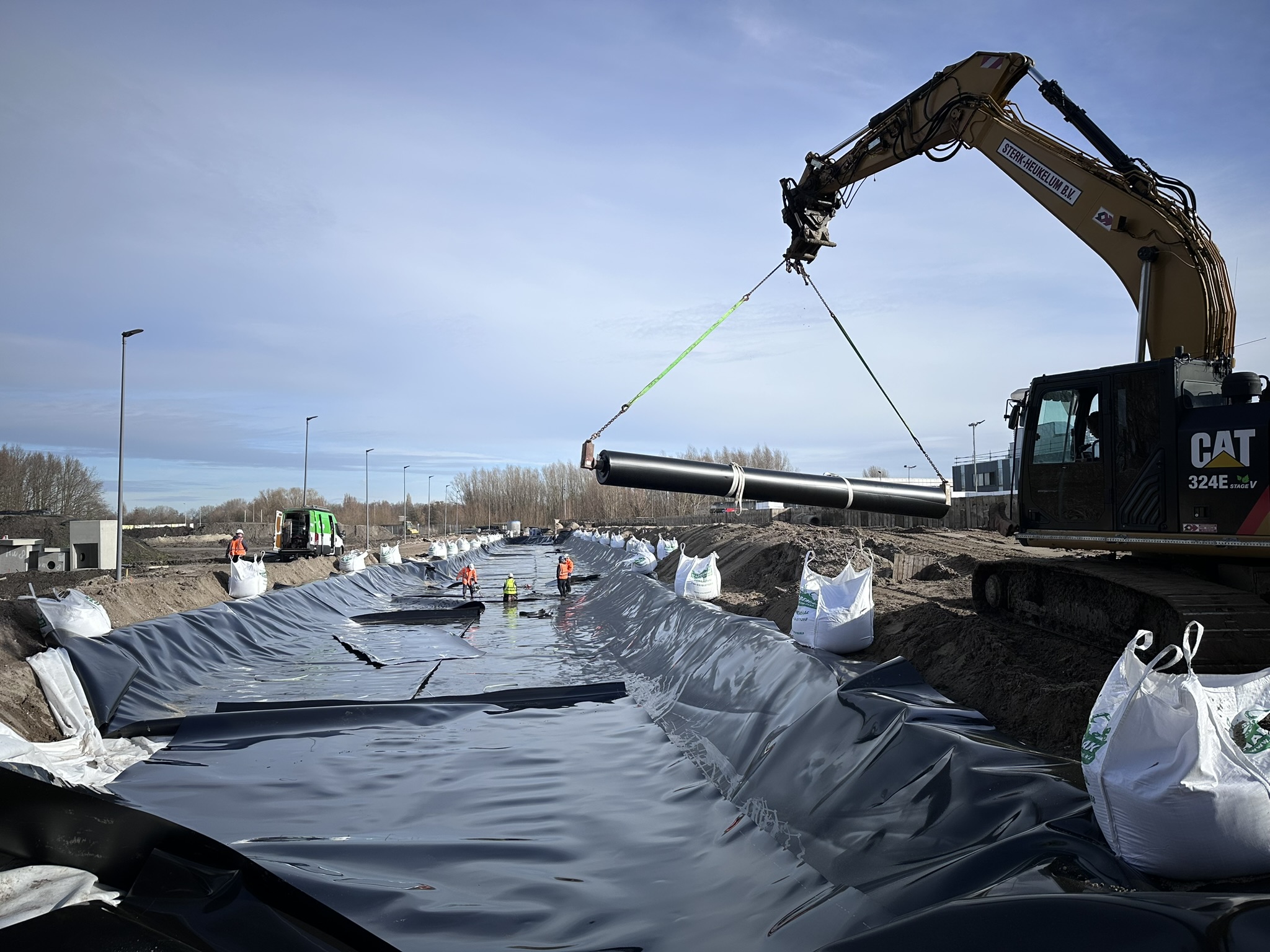 – De eerste laag is de constructieve laag waar de containers op staan. Deze hoeft niet persé waterdicht te zijn maar moet wel sterk zijn en zijn krachten goed verdelen over de tweede laag. Deze eerste laag kan worden hergebruikt.