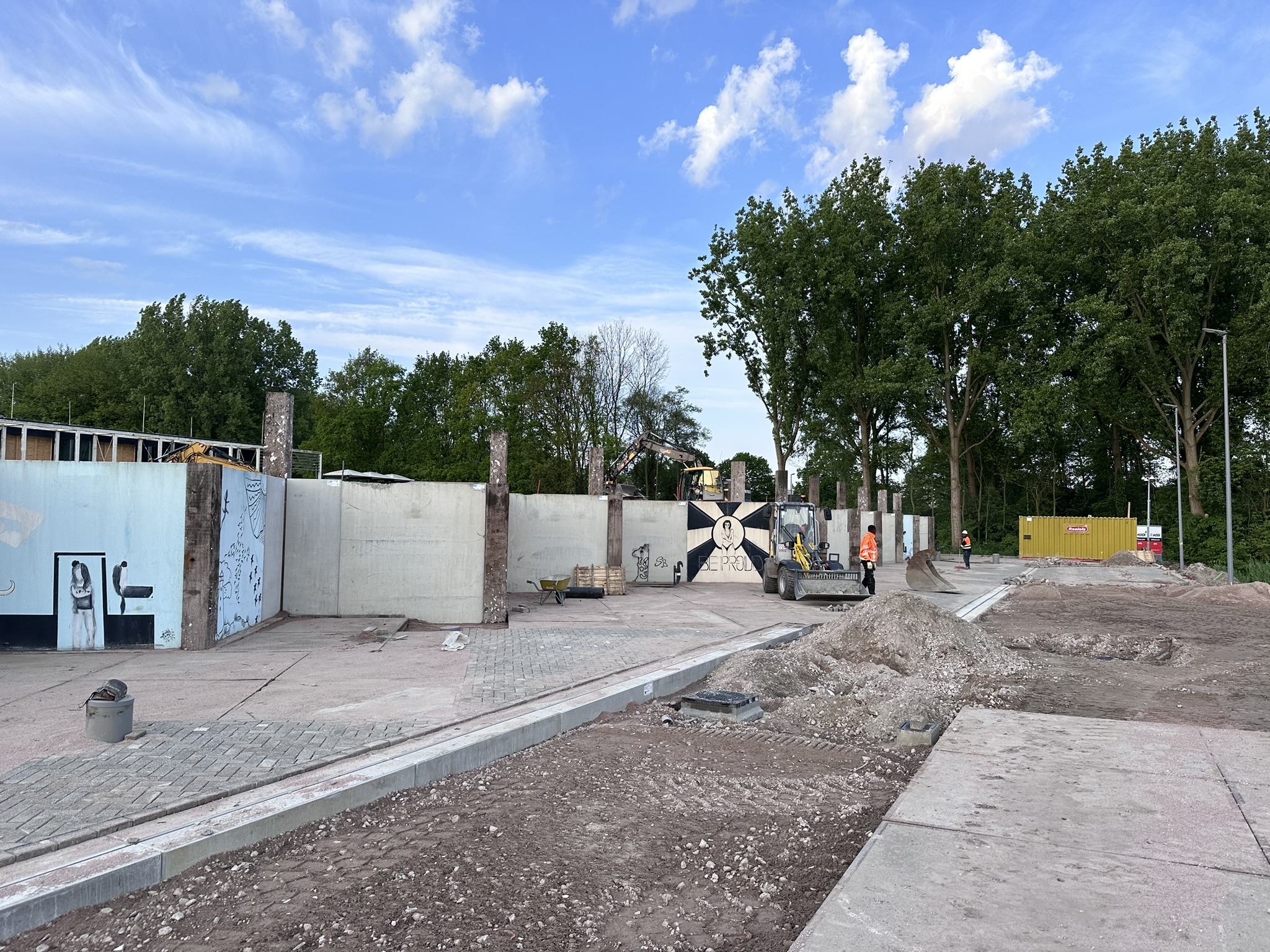 De betonplaten zijn door Breure geleverd op het depot aan de Teugeweg. Vervolgens zijn de platen en de folie volgens het geldende plan op het milieupark aangebracht. Tijdens deze toepassing bleek slechts een klein percentage van de platen, een paar procent, ongeschikt. Deze afgekeurde platen hebben alsnog een nuttige bestemming gekregen op het milieupark, bijvoorbeeld bij de installatie van rioolputten.